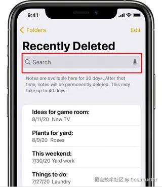 对于运行iOS 11 或更高版本的 iPhone,备忘录应用中有一个“最近删除”文件夹。如果您发现 iPhone 备忘录丢失,您可以在 30 天内从“最近删除”文件夹中恢复备忘录。您可以执行以下操作:
