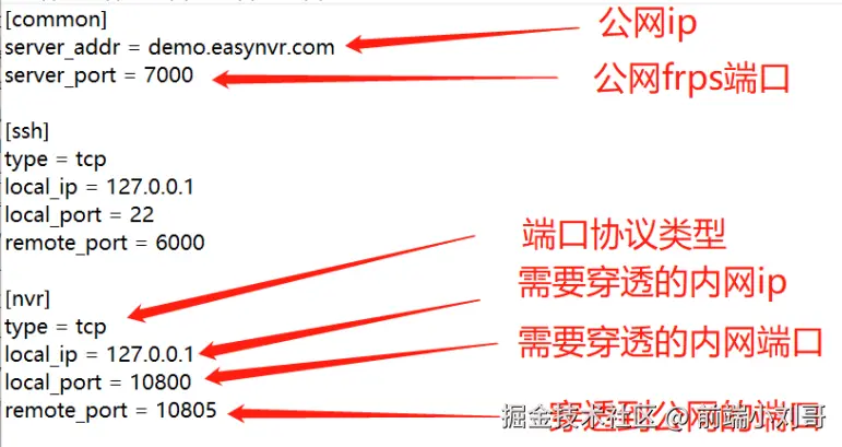 2)在EasyCVR服务器安装映射客户端FRPC,打开frpc.ini配置文件;