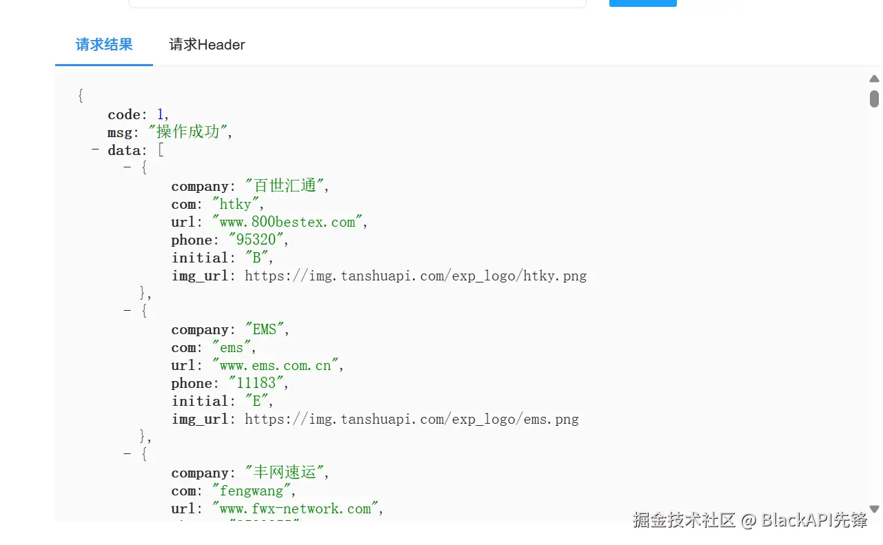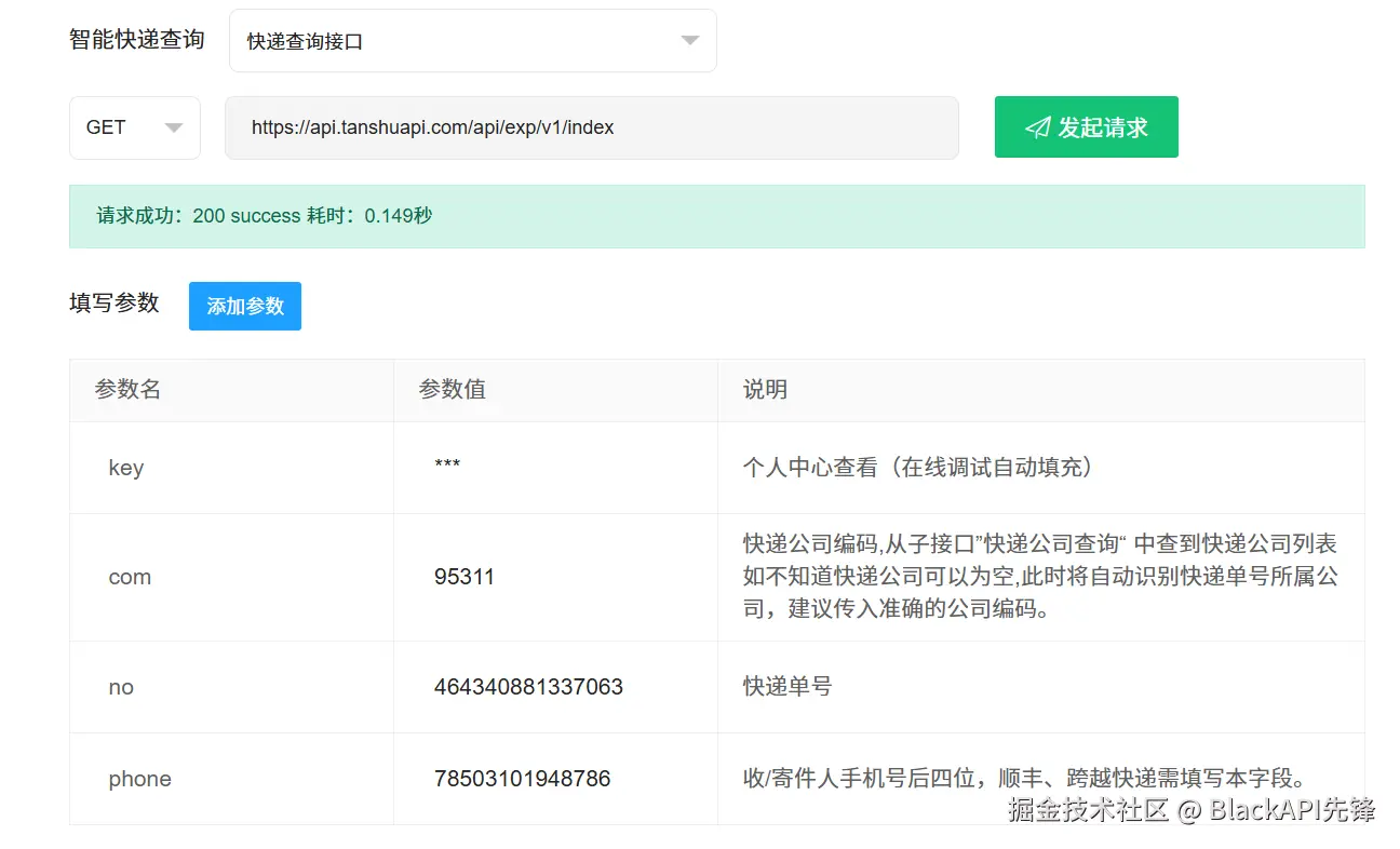 ###三 、调试示例(以查询快递为例)