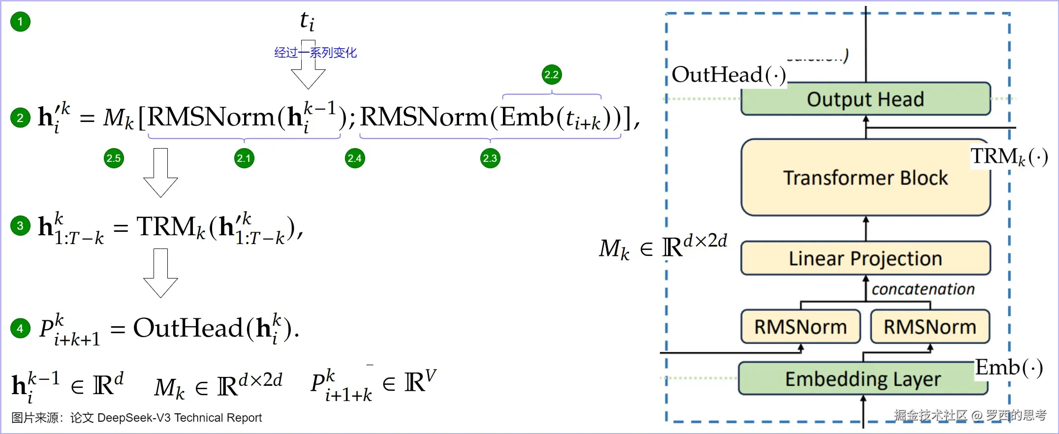 Deepseek-v3技术报告-图的逐步解析-3-不容易看懂的MTP-公式有拼写错误 迷途小书僮