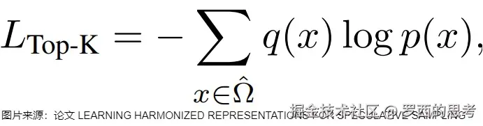 HASS 通过引入推荐系统中的排序蒸馏思想,优先考虑草稿模型解码时更重要的一些 token。具体来说,排序蒸馏的目标是训练学生模型,使其对教师模型中排名靠前的项赋予更高的排序。在投机采样中,草稿模型是学生模型,而目标 LLM 是教师模型。具有类似特性的草稿模型在解码阶段将获得更高的接收率。设 K 个概率最高的 token 组成的集合为 ,其中代表整个词汇表。HASS 在训练时使用以下的 Top-K 蒸馏损失: