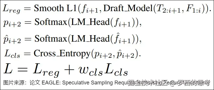 - Classification Loss(分类损失)使用交叉熵损失 (Cross Entropy Loss) 来衡量预测 token 分布(自回归头输出的特征)和真实 token 分布(原模型特征在经过 LM Head 之后的分类)之间的差异。这是要求两个模型的概率分布对齐。