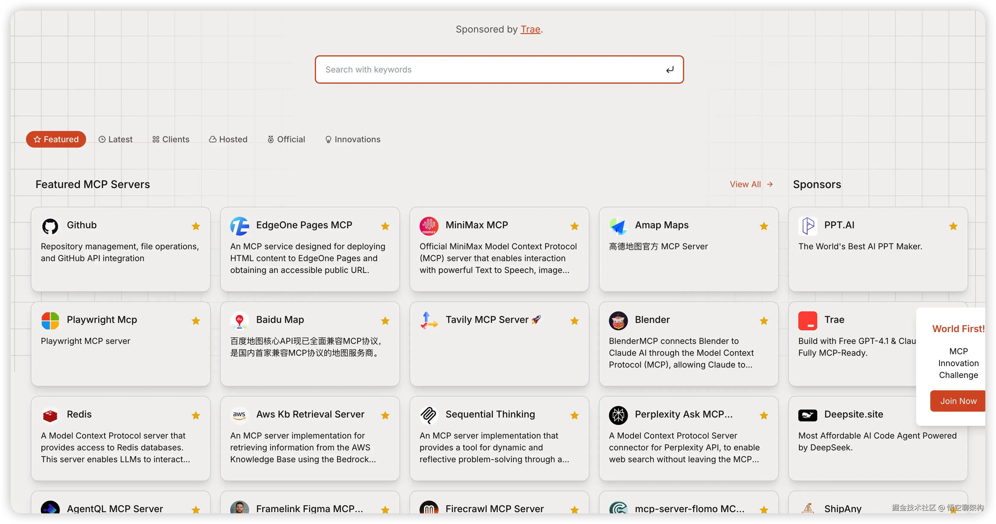 大模型应用可以使用别人分享的 MCP 服务来完成各种各样的工作内容,你可以从这些地方获取 MCP 服务: