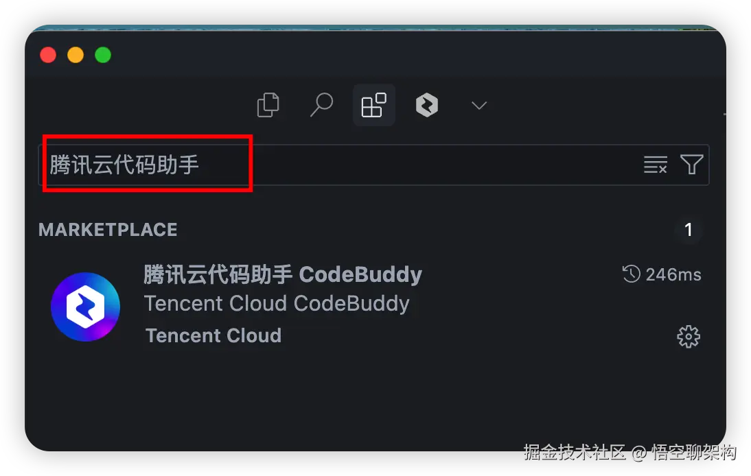 在 Cursor 应用市场中搜索腾讯云代码助手,安装后即可使用。