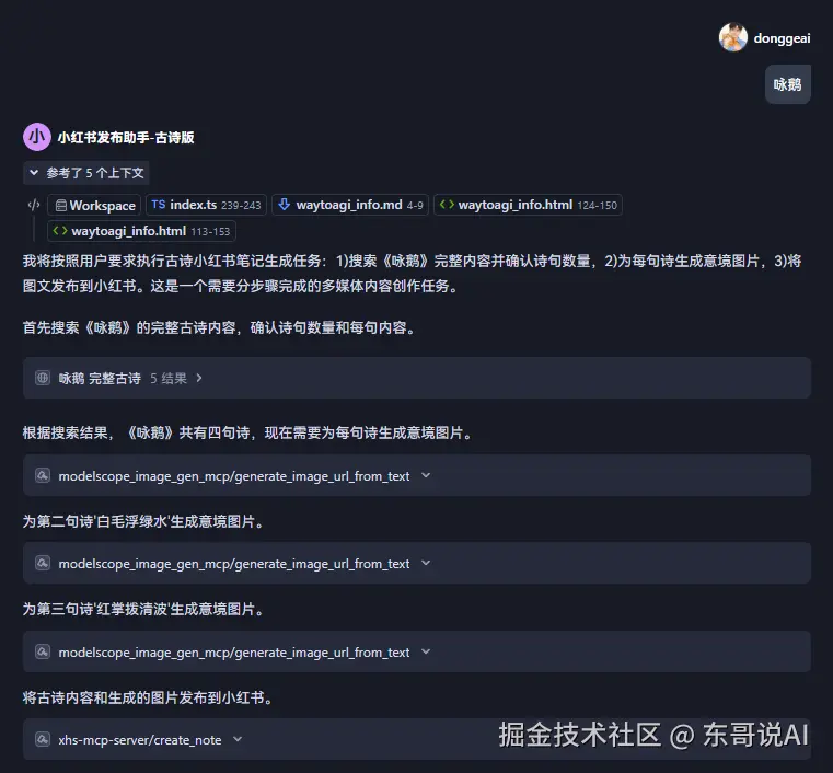 现在还是需要人来准备好笔记素材(标题内容和图片等)才能发布,既然有了AI,那就让它再打一份工、把笔记素材的事也搞定,我们就只需要动嘴就可以了,榨干AI的全部价值!