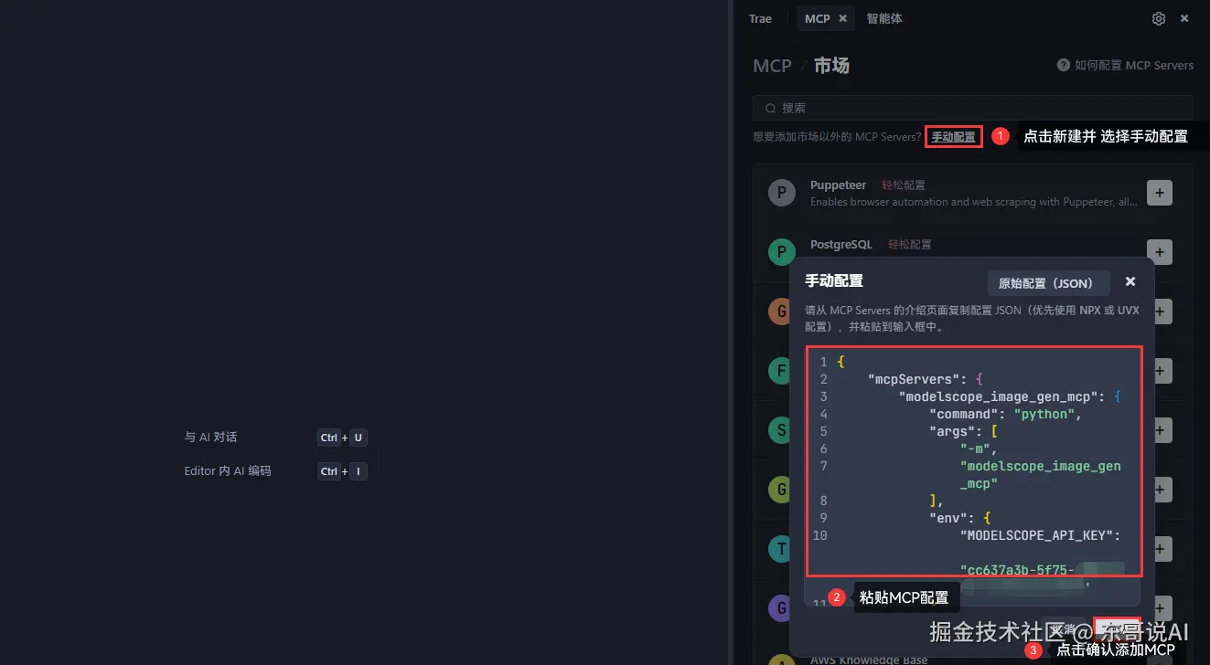 然后按照类似的方式在Trae中配置图片生成MCP: