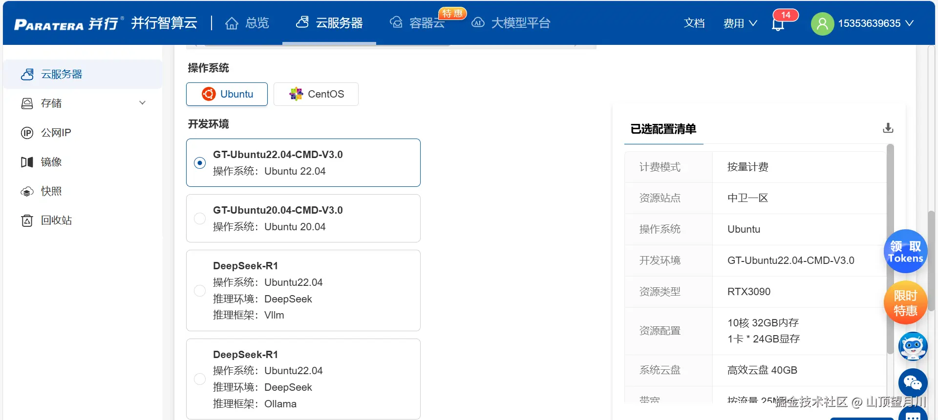 - 进入“算力市场”,选择适合的GPU机型,如A100/V100。