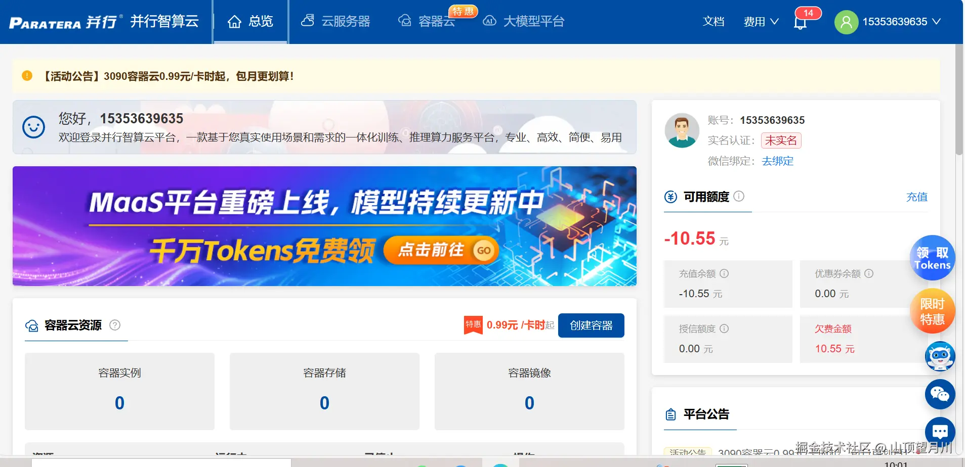 注册与登录:访问智算云官网,完成注册并登录。