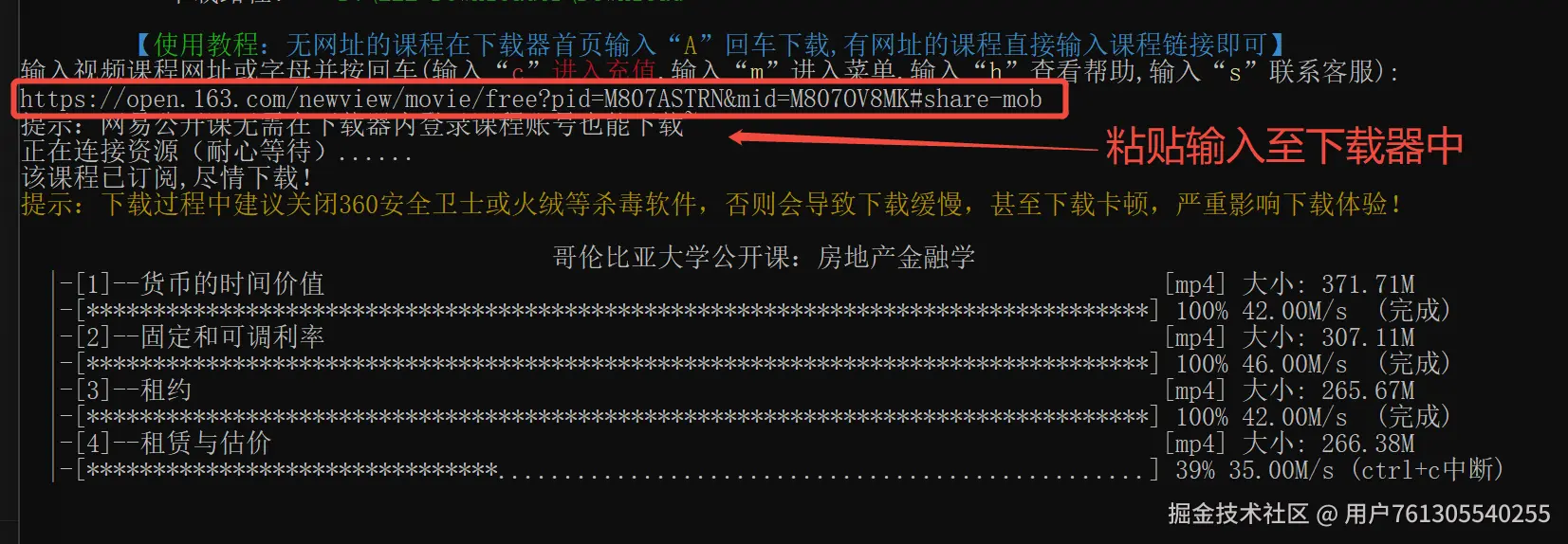 【详细教程】如何下载网易公开课上面的视频课程 用户761305540255 2025-05-17 147 阅读1分钟 前言:很多同学都想知道网易公开课中的视频怎么下载,所以下面就教大家如何下载网易公开课中展示的视频。 提示:操作需要用到Windows电脑,Mac还不支持 一、电脑登录网易公开课网页,复制对于课程链接 二、将复制后课程链接粘贴至下载器中 三、等待下载完成,视频文件会自动按照目录整理好 四:网易公开课视频下载工具获取地址 www.xuewuzhi.cn/downloader