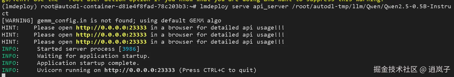 lmdeploy serve api_server /root/autodl-tmp/llm/Qwen/Qwen2.5-0.5B-Instruct