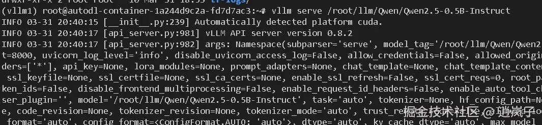vllm serve /root/autodl-tmp/llm/Qwen/Qwen2.5-0.5B-Instruct
