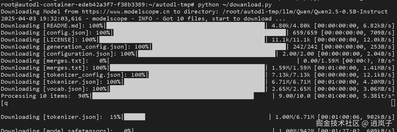 model_dir = snapshot_download('Qwen/Qwen2.5-1.5B-Instruct', cache_dir='/root/autodl-tmp/llm')