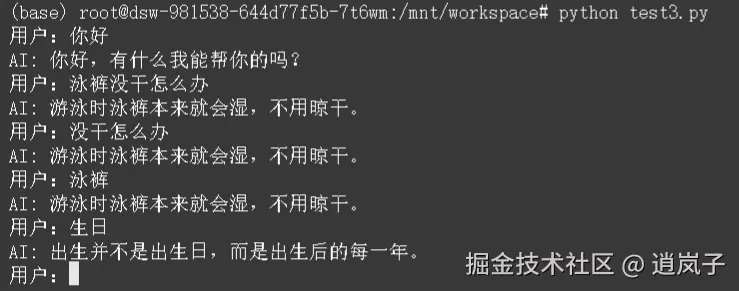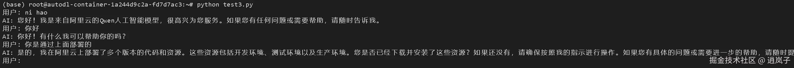 chat_complition = client.chat.completions.create(messages=chat_history,model="/root/autodl-tmp/llm/Qwen/Qwen2.5-0.5B-Instruct")