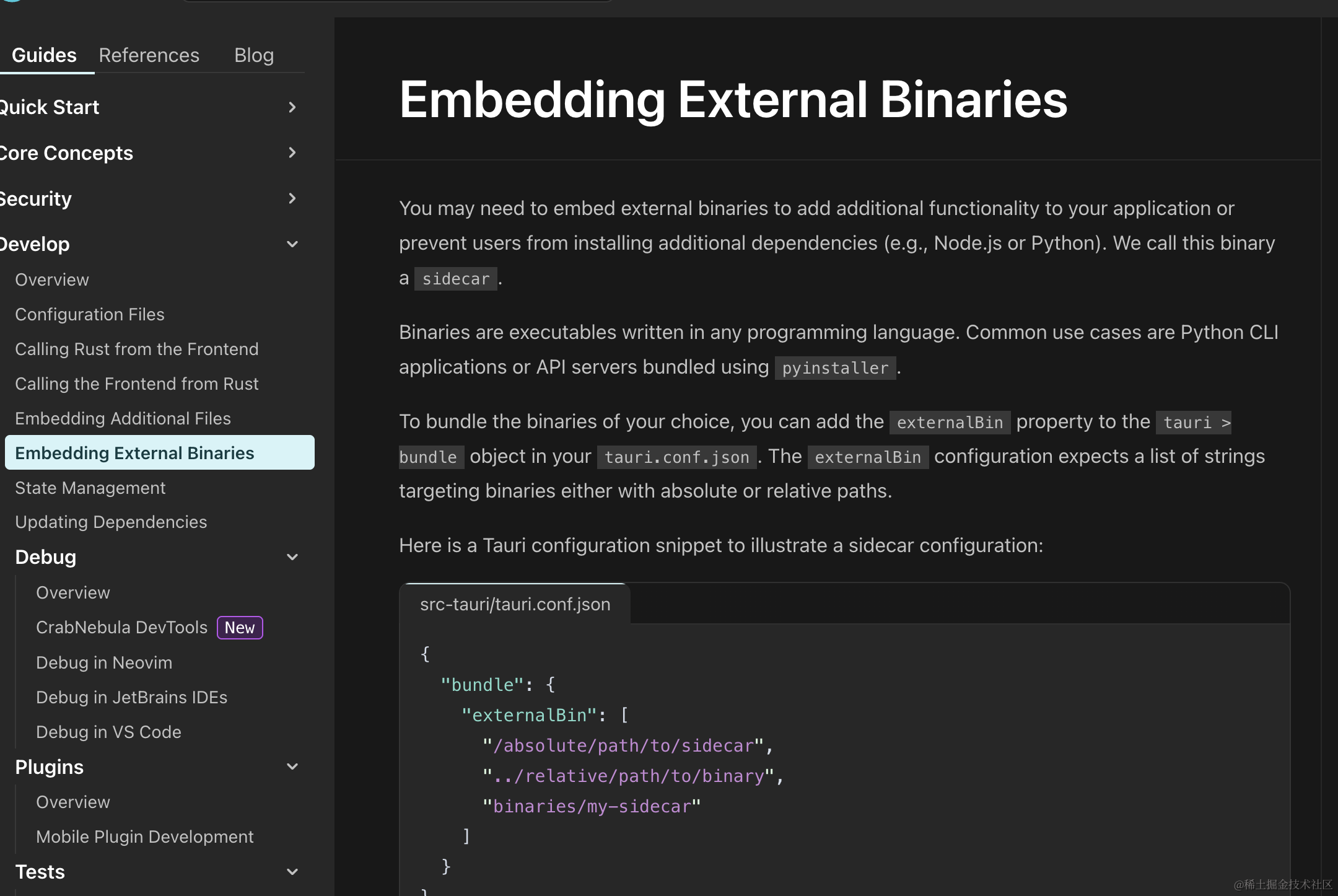 官方文档:Embedding External Binaries | Tauri