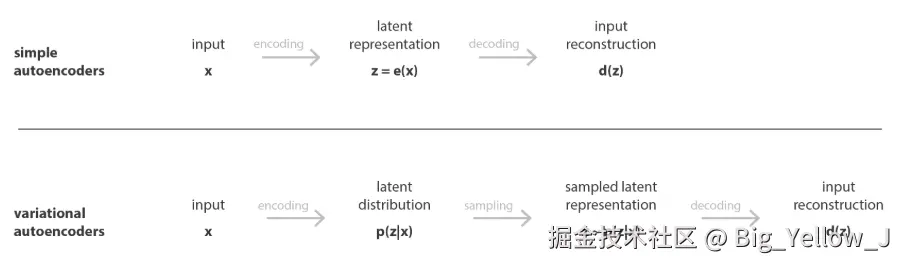 前者不适合对于图片进行生成而后者则是更加适合图像生成,这是因为AE将输入映射到一个低纬空间z这个低纬空间并没有明确的结构,进而就可能不适合去生成新的数据,而VAE之所以可以用于生成新的数据是,比如说对于图像数据(比如说:猫)如果知道其分布特征,就可以直接通过分布特征去构建一个新的图像