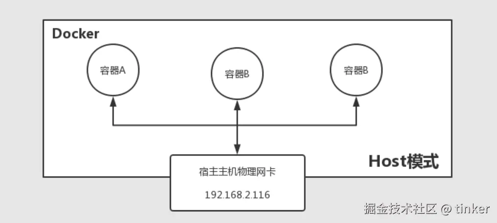 如果指定的host模式容器不会拥有一个独立network namesace,而是与宿主主机共用network namesace。也就说明容器本身不会有的网卡信息,而是使用宿主主机的网络信息。容器除了网络,其他比如文件系统、进程等依然都是隔离的。