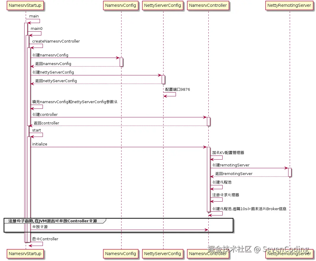 根据启动属性创建NamesrvController实例,并初始化该实例。NameServerController实例为NameServer核心控制器