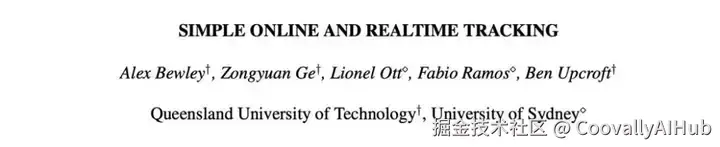 SORT是2016年发表的一篇文章《Simple Online and Realtime Tracking》中提出的一个经典的多目标跟踪算法,该算法结合常用的卡尔曼滤波器和匈牙利匹配算法实现了一个简单的在线多目标跟踪框架。由于其超简单的设计,SORT可以以260 Hz的更新速率实现多目标跟踪,远超当时其它的目标跟踪算法。