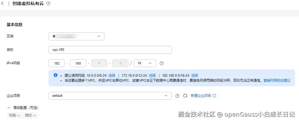 创建VPC和安全组,为创建GaussDB实例准备网络资源和安全组。