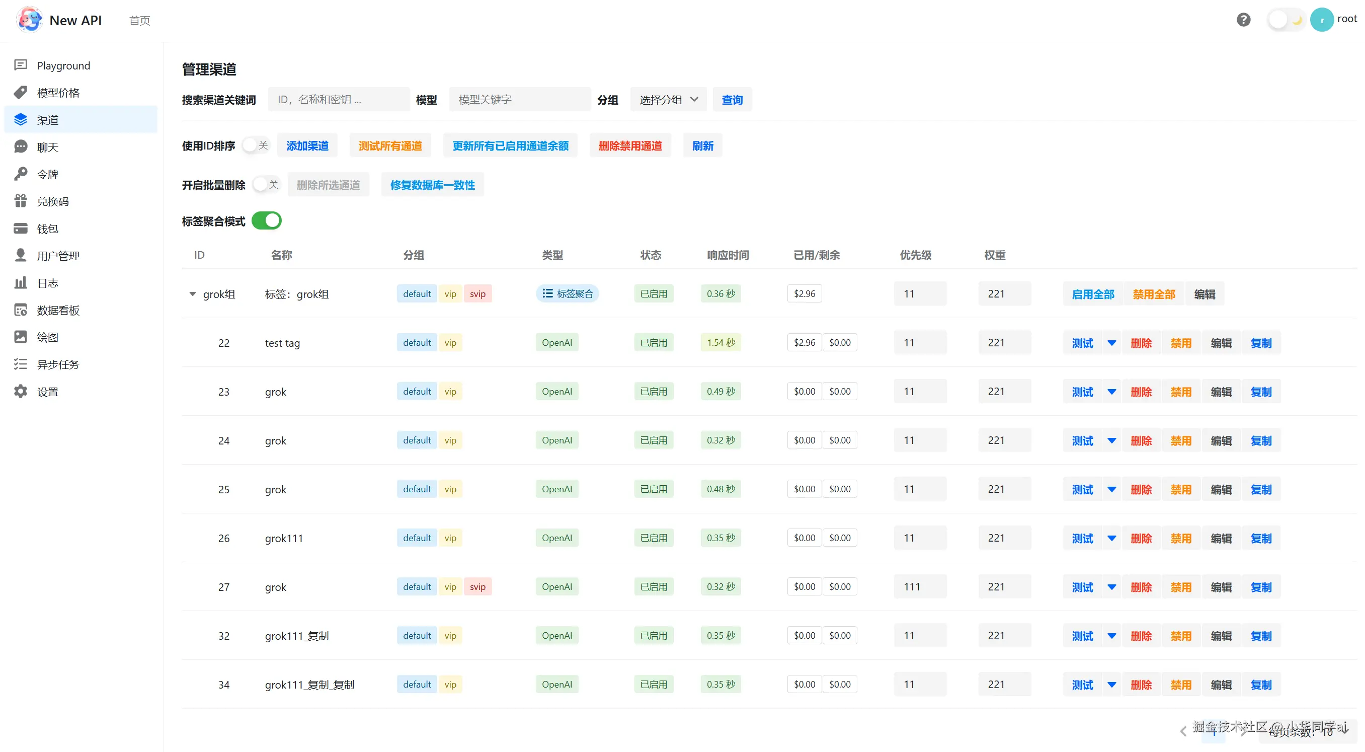 - 智能路由策略:支持渠道加权随机分配,避免单一接口过载