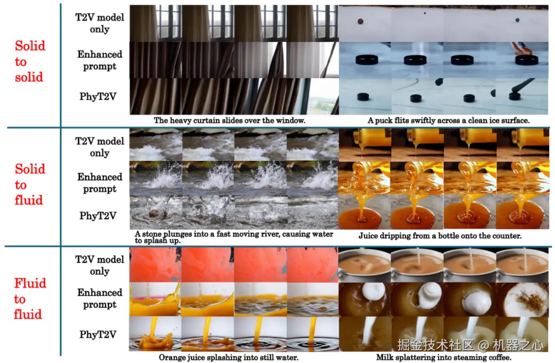 无需训练、即插即用:无需修改任何 T2V 模型结构,也不需额外训练数据,即可直接增强不同 T2V 模型的物理一致性。