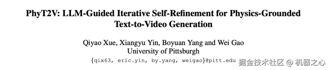 为推动物理一致性驱动的 T2V 生成研究,来自匹兹堡大学的研究团队提出了 PhyT2V 框架,并在最新论文中系统阐述了该方法的核心机制,该论文已被 CVPR 2025 接收。