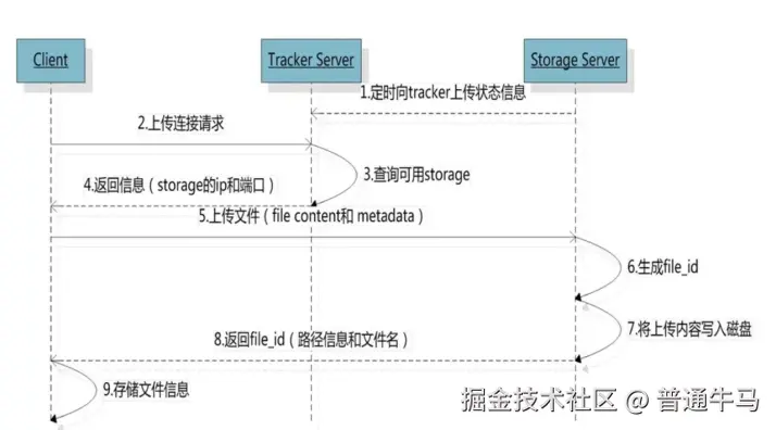 Client每次需要使用FastDFS时,需要询问tracker,tracker会返回一台可用的storage去上传文件;