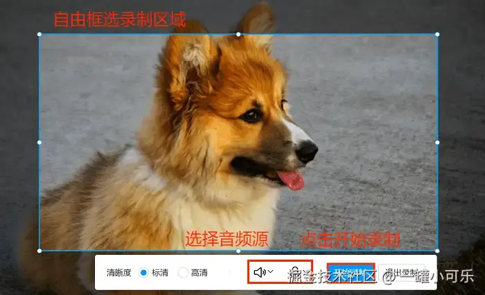 步骤2:自由框选需要录制的区域,选择好需要录制的音频源,最后点击 “开始录制” 就好了。