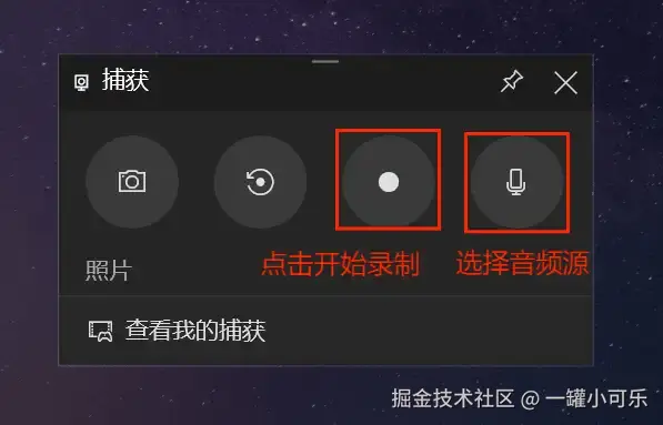 步骤1:按下快捷键“Win+G”唤出Xbox Game Bar,点击 “捕获” 。