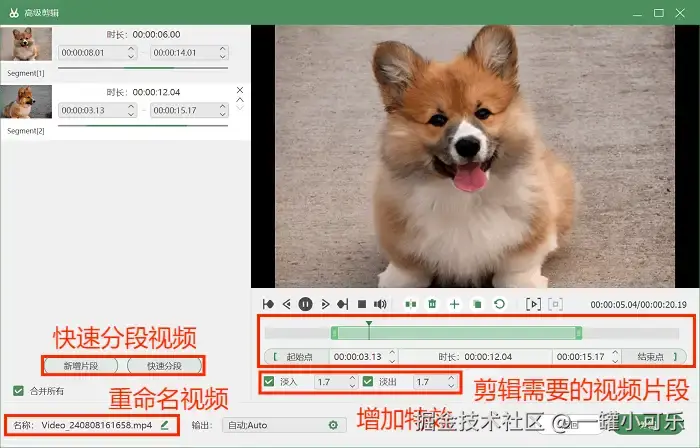步骤3:录制完毕后,可以选择预览页面下方的 “高级剪辑” 工具,对视频进行编辑。比如重命名视频、剪辑需要的视频片段等。