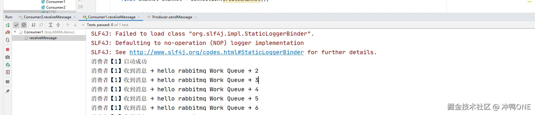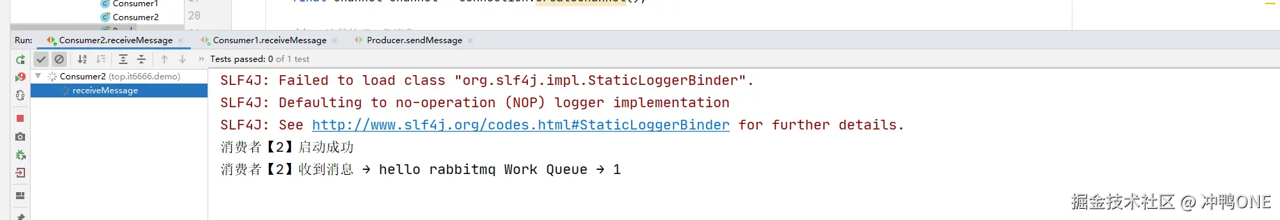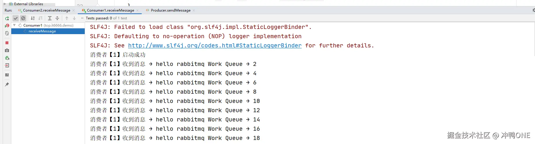 先启动消费者1和消费者2,再启动消息生产者发送消息,发现结果如下: