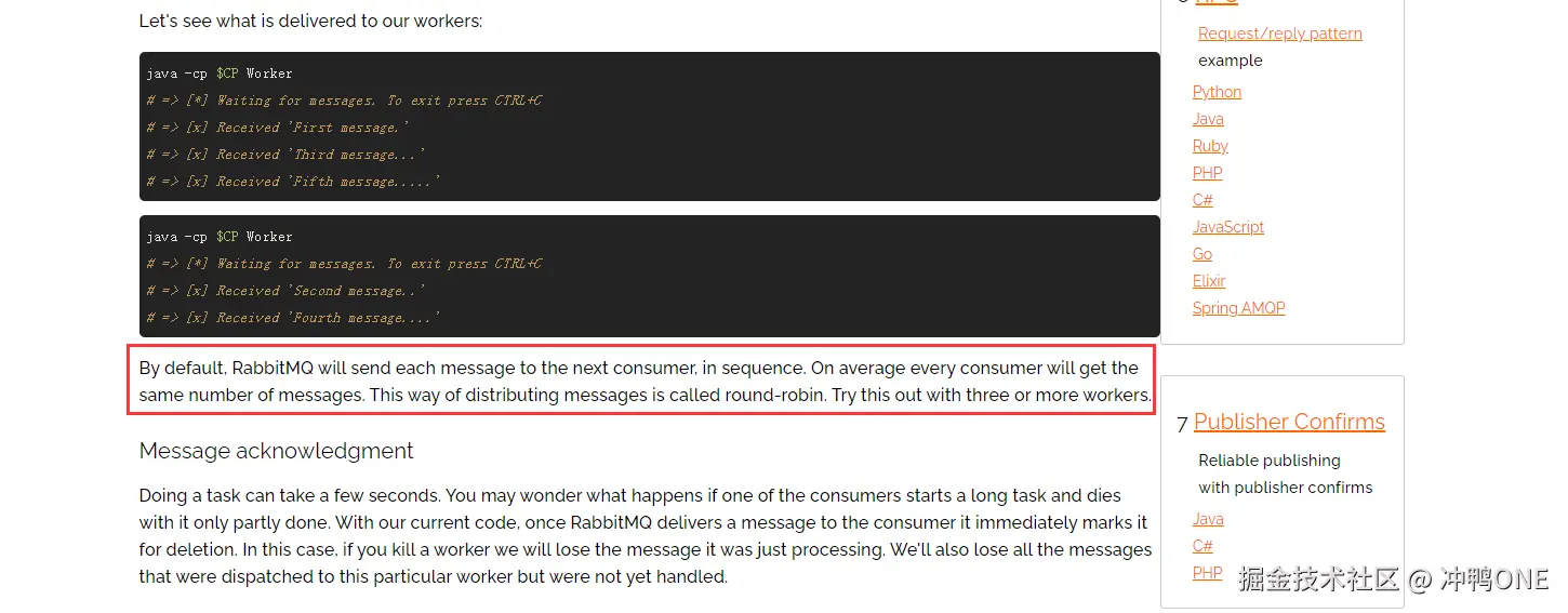 完成一项任务可能需要几秒钟。您可能想知道,如果一个消费者开始了一项很长的任务,但只完成了一部分就去世了,会发生什么。在我们当前的代码中,一旦 RabbitMQ 向使用者传递了一条消息,它就会立即将其标记为删除。在这种情况下,如果你杀死一个工人,我们就会丢失它正在处理的信息。我们还将丢失所有发送给这个特定 worker 但尚未处理的消息。