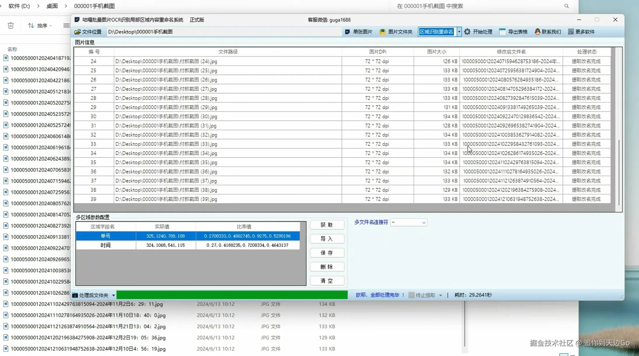 点击“开始处理”或“开始识别”按钮,软件将自动提取指定区域的文字内容,并根据识别结果对文件进行批量重命名。
