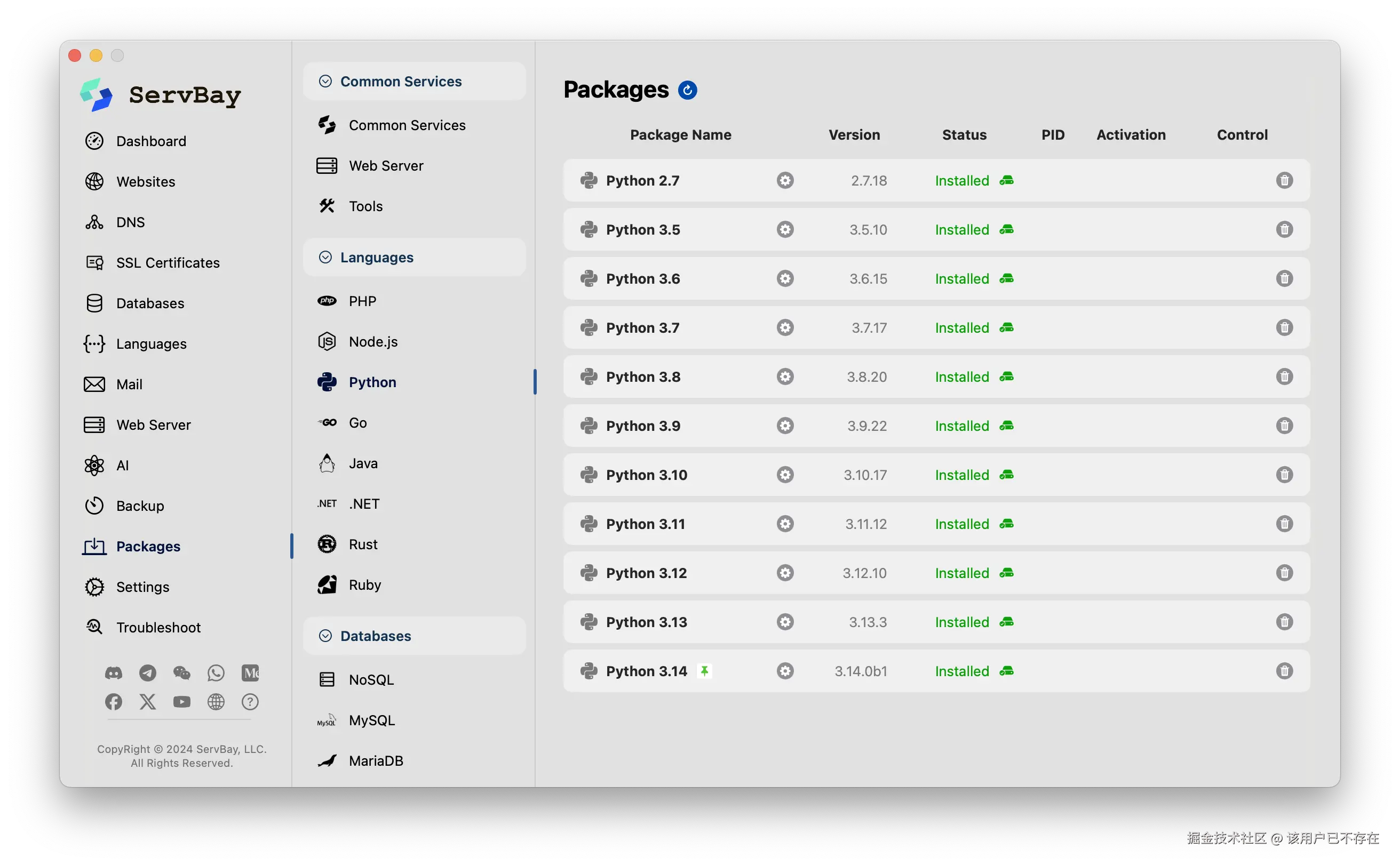 - 在 ServBay 的主界面,左侧找到“软件包”