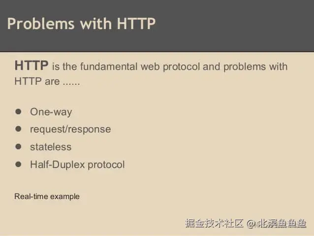 举例来说,我们想了解查询今天的实时数据,只能是客户端向服务器发出请求,服务器返回查询结果。HTTP 协议做不到服务器主动向客户端推送信息。