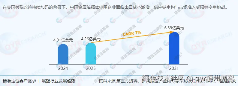 《2025年全球及中国金属箔精密电阻企业出海开展业务规划及策略研究报告》报告中,QYResearch研究全球与中国市场金属箔精密电阻的产能、产量、销量、销售额、价格及未来趋势。重点分析全球与中国市场的主要厂商产品特点、产品规格、价格、销量、销售收入及全球和中国市场主要生产商的市场份额。历史数据为2020至2024年,预测数据为2025至2031年。