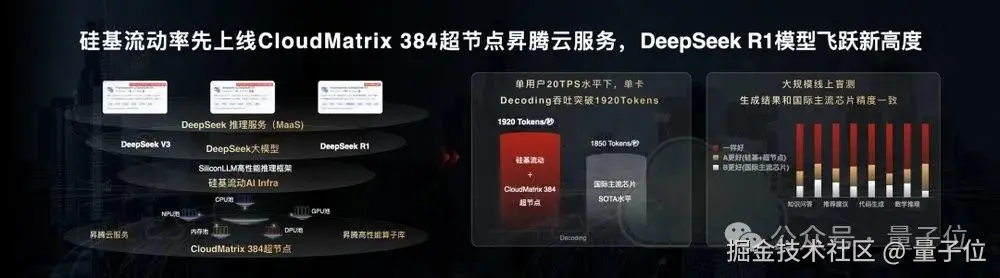 在 2025 年 4 月,硅基流动联合华为云基于 CloudMatrix 384 超节点昇腾云服务和高性能推理框架 SiliconLLM,用大规模专家并行最佳实践正式上线 DeepSeek-R1。