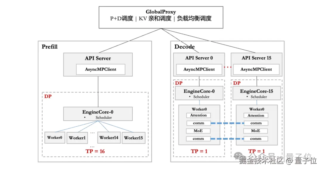 在推理框架优化方面,针对高并发场景下单点 API Server 这一性能瓶颈,华为团队设计了 API Server 横向扩展方案,采用水平扩展技术提升框架的请求响应能力,显著降低用户请求延迟并提高整体服务吞吐量(QPS)。