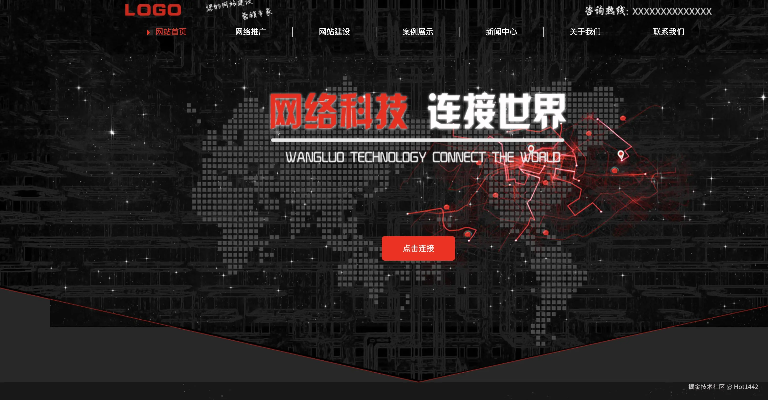 🧠 页面结构也非常清晰,首页主打科技感视觉冲击,往下还有网站建设模块、服务板块、新闻模块,商务风拉满。