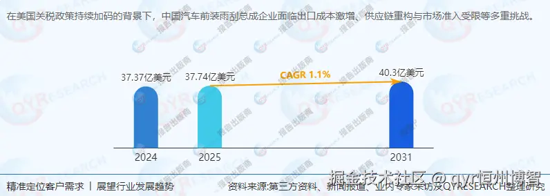 根据QYResearch最新调研报告显示,2024年全球汽车前装雨刮总成市场销售额达37.37亿美元,预计2031年将增至40.3亿美元,2025-2031年CAGR为1.1%。