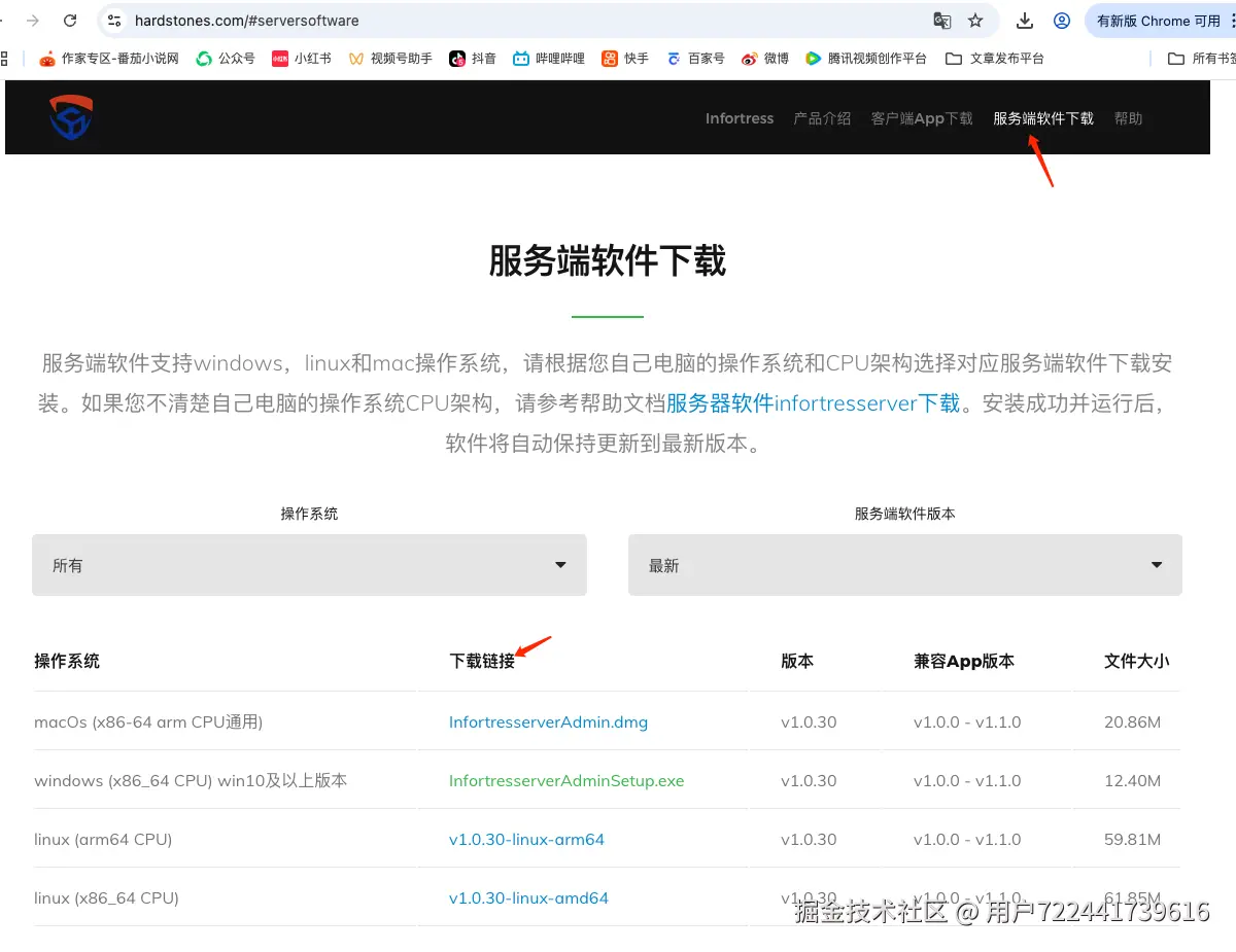 1. 下载服务端,登录Infortress官网,根据自己的电脑系统下载对应的电脑服务端