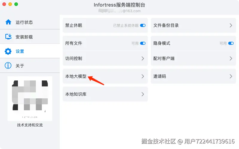 进入电脑服务端的设置页面:点击左侧菜单“设置”,找到“本地大模型”。