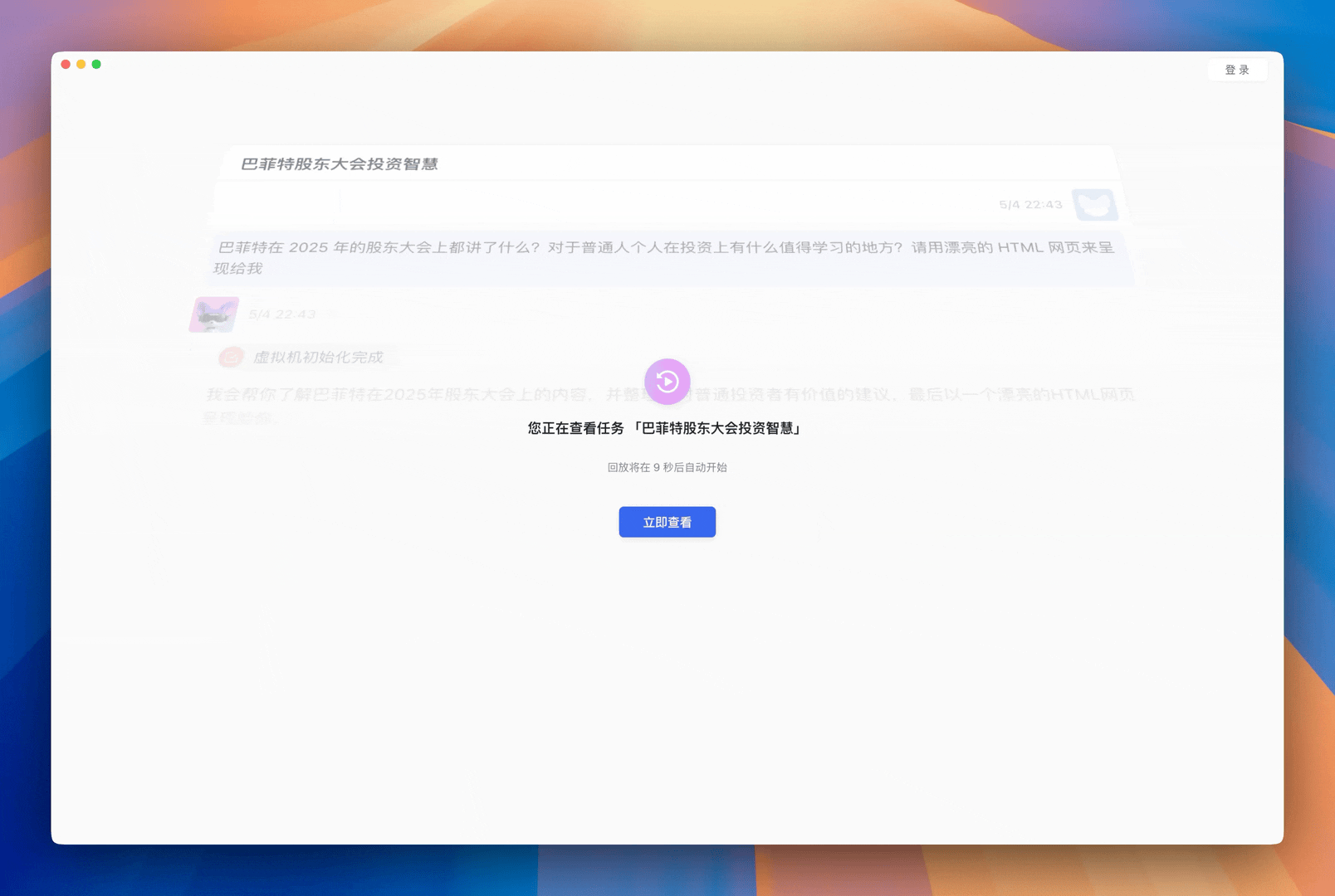 超级麦吉的通用型 Agent 模式,能帮助你成为百倍生产力的超级个体,你可以管理无数个你的数字分身,帮你拆解并在云端执行复杂任务,不占用你的时间,它会实时展示工作进度,让你有绝对的掌控感,你可以用超级麦吉释放那些繁杂的事务,终结你的职场压力,让你聚焦真正创造价值的工作!