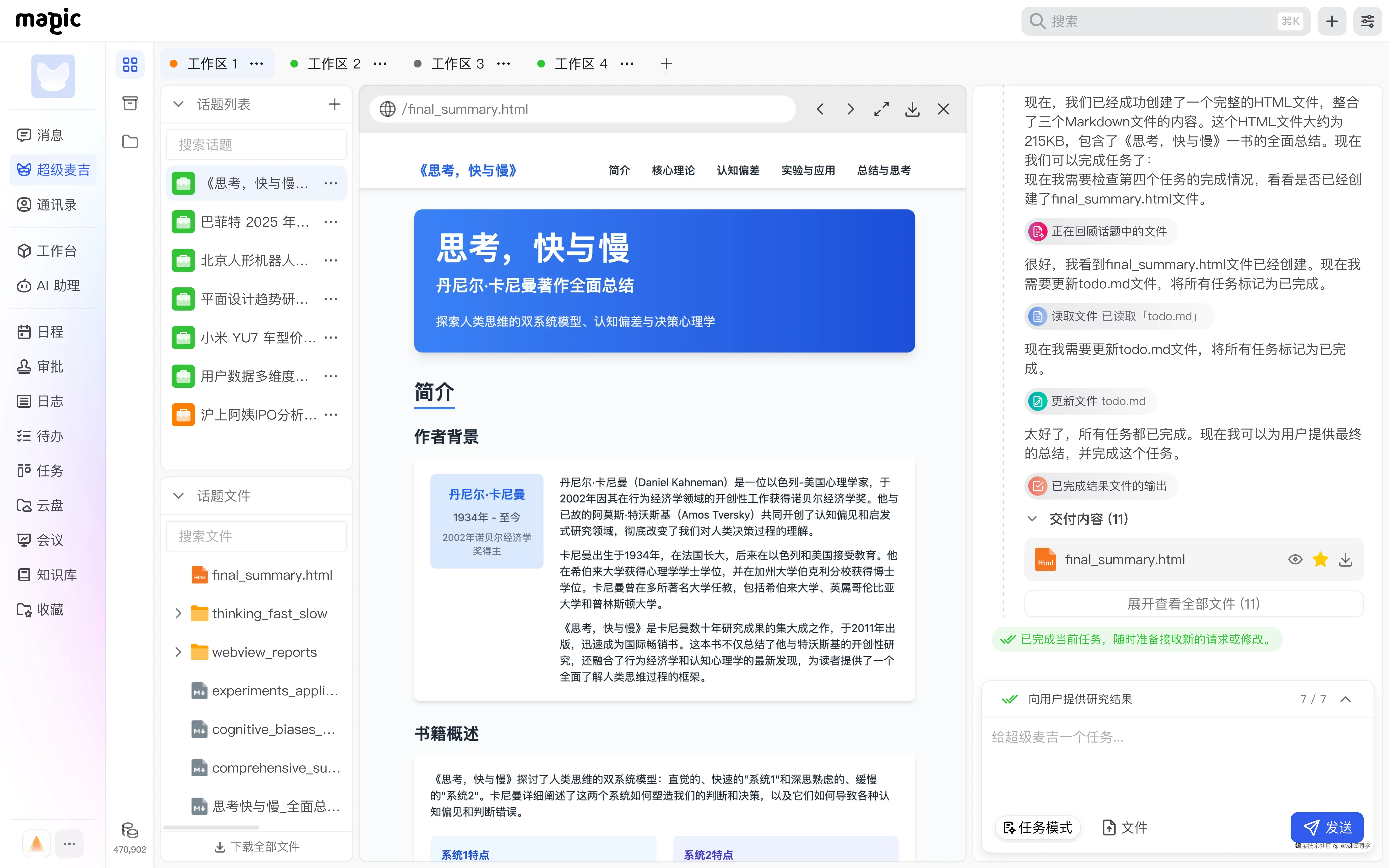 下图是一个由超级麦吉完全自主完成的复杂任务,我们在官网也准备了丰富的案例,你可以访问 www.letsmagic.cn 打开你对超级麦吉的想象力。