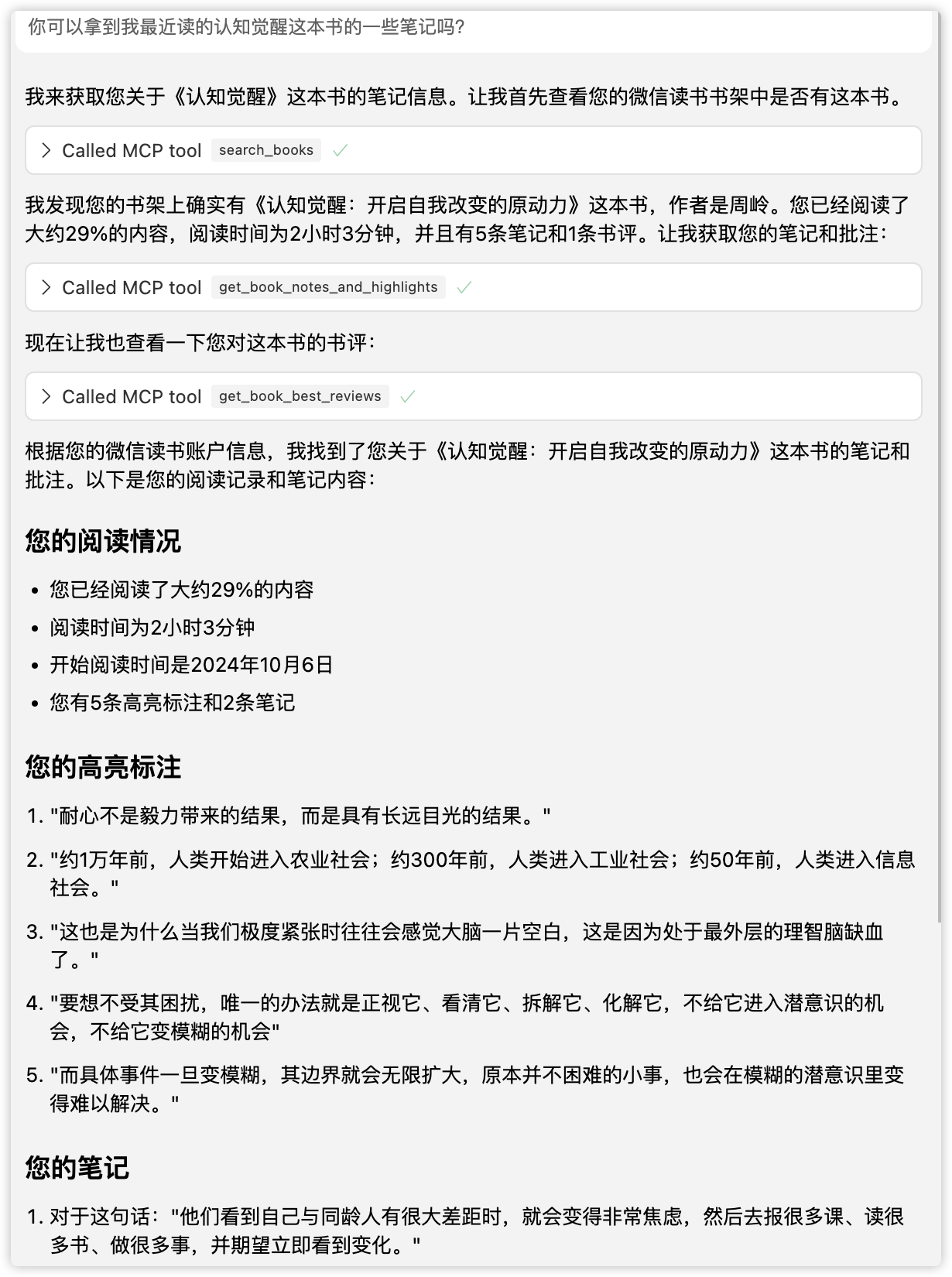 最近我正好在探索Cursor,就想着两个能不能关联起来,你别说,我一试还真就成功了,方法也不难,就是用现在的MCP服务让cursor关联上微信读书即可。