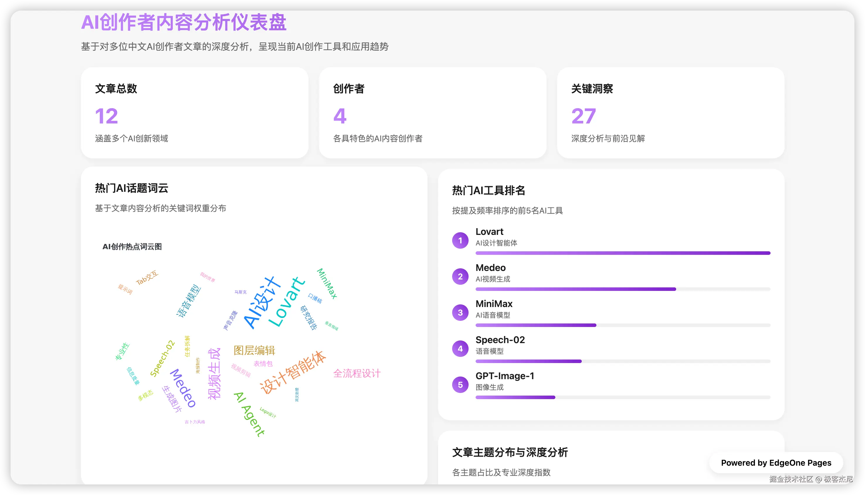 看到这里,所有步骤都已经完成了,数据报告页面部分截图如下,完整版链接(mcp.edgeone.site/share/kC4ml…
