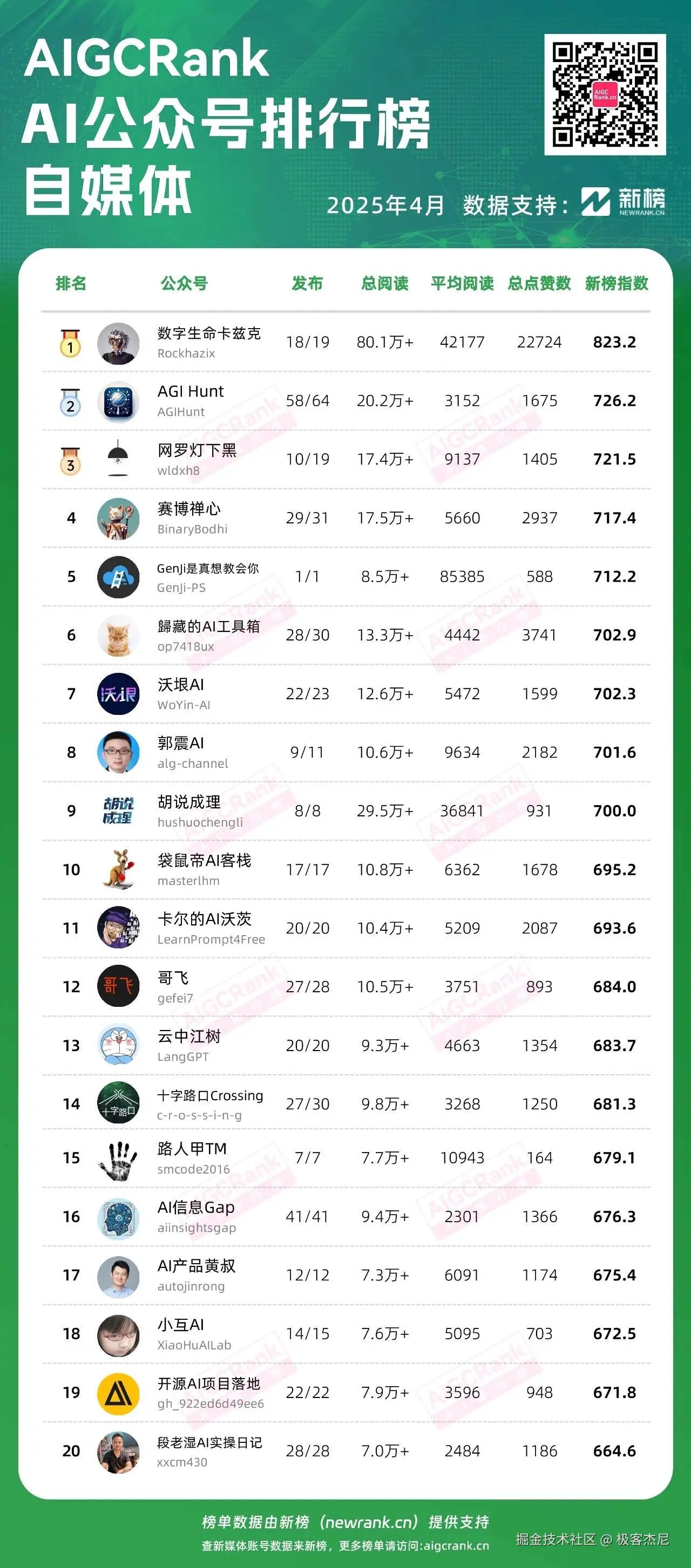 AIGCRank AI 公众号自媒体排行榜上的热门创作者大家有关注哪一些呢?