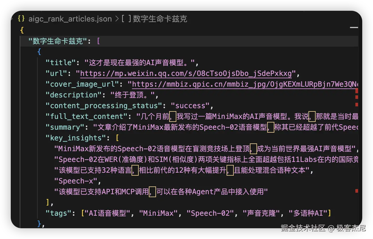 * 所有数据整合后,保存到执行任务的**当前工作目录**下,文件名为 `aigc_rank_articles.json`。