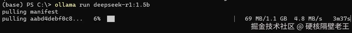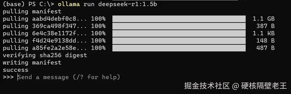 下载完成后,ollama会为我们运行刚下载的大模型。下面是我运行成功的截图: