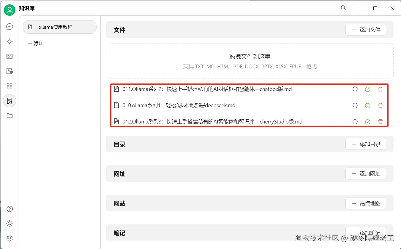 为了进行演示,我们将本系列教程的前三篇放入知识库中: